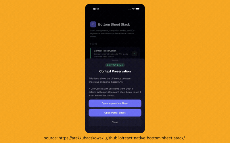 It handles the layout animations and "mixed stacking" (opening a modal on top of a sheet) automatically. It means you can stop writing "if/else" logic for your modal content and start treating your sheets like actual first-class navigation citizens.