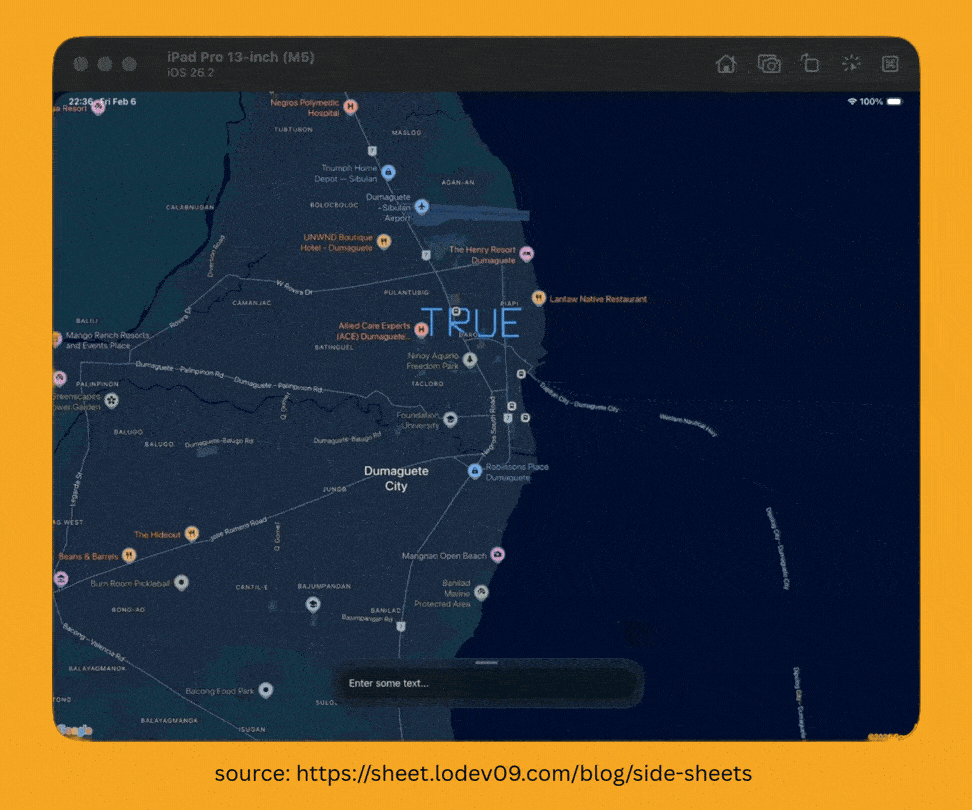 And the cool part? Because it’s fully native, you inherit the platform’s built-in ability to move the sheet around on tablets and iPad —and it looks very slick.